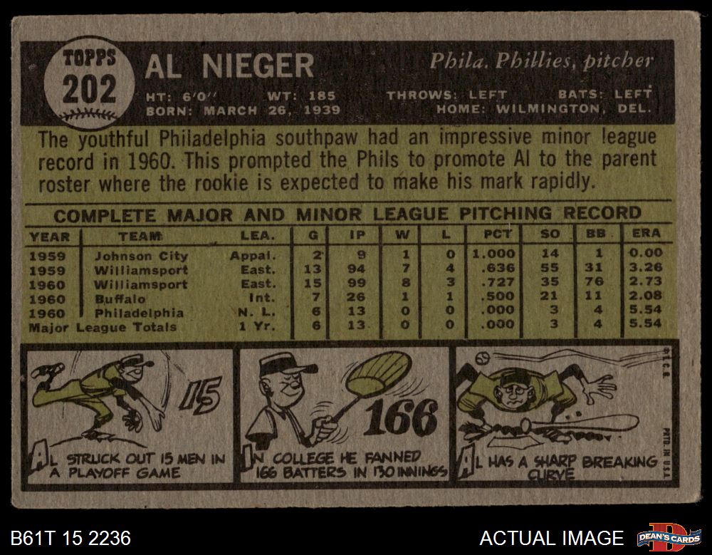 1961 Topps #202 Al Neiger 1.5 - FAIR