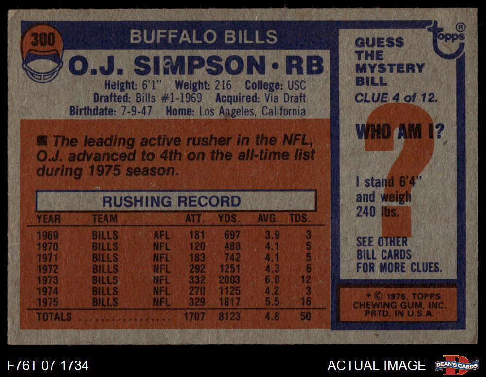 1976 Topps #300 O.J. Simpson 2 - GOOD