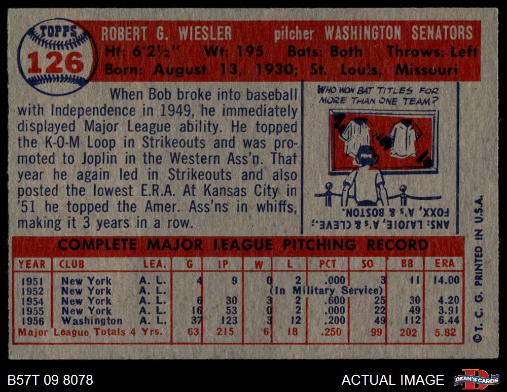 1957 Topps #126 Bob Wiesler 6 - EX/MT