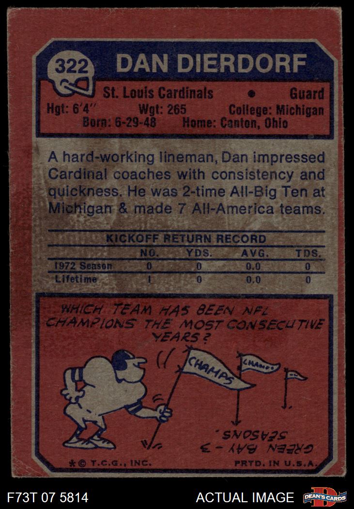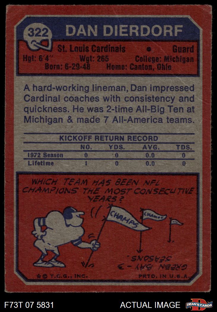 1973 Topps #322 Dan Dierdorf