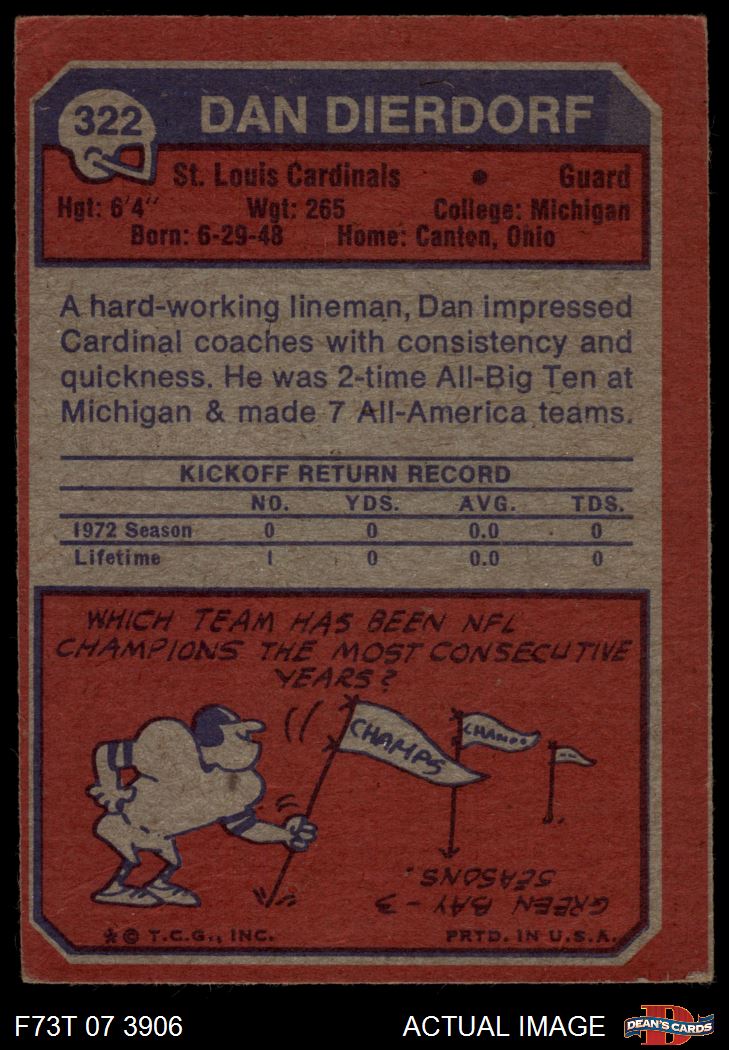 1973 Topps #322 Dan Dierdorf 3 - VG