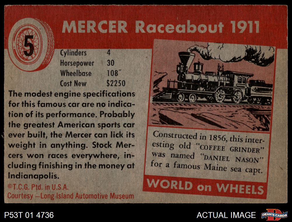 1954 Topps World on Wheels #5 Mercer Raceabout 1911