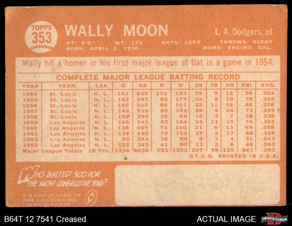 1964 Topps #353 Wally Moon 1 - POOR
