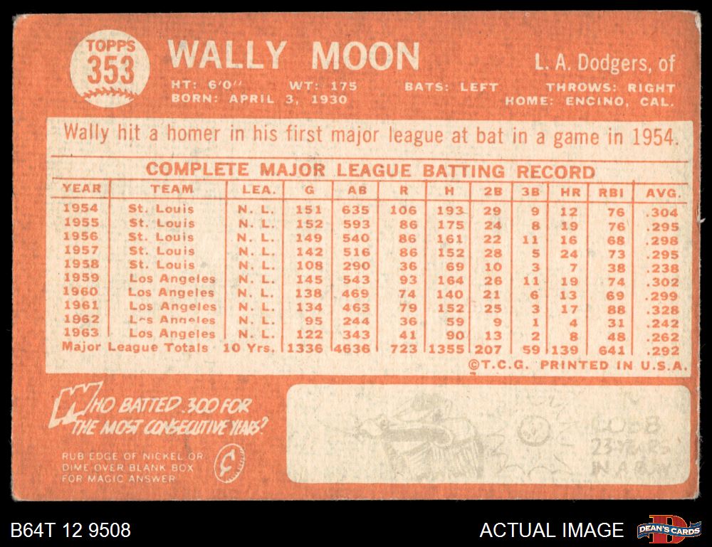 1964 Topps #353 Wally Moon