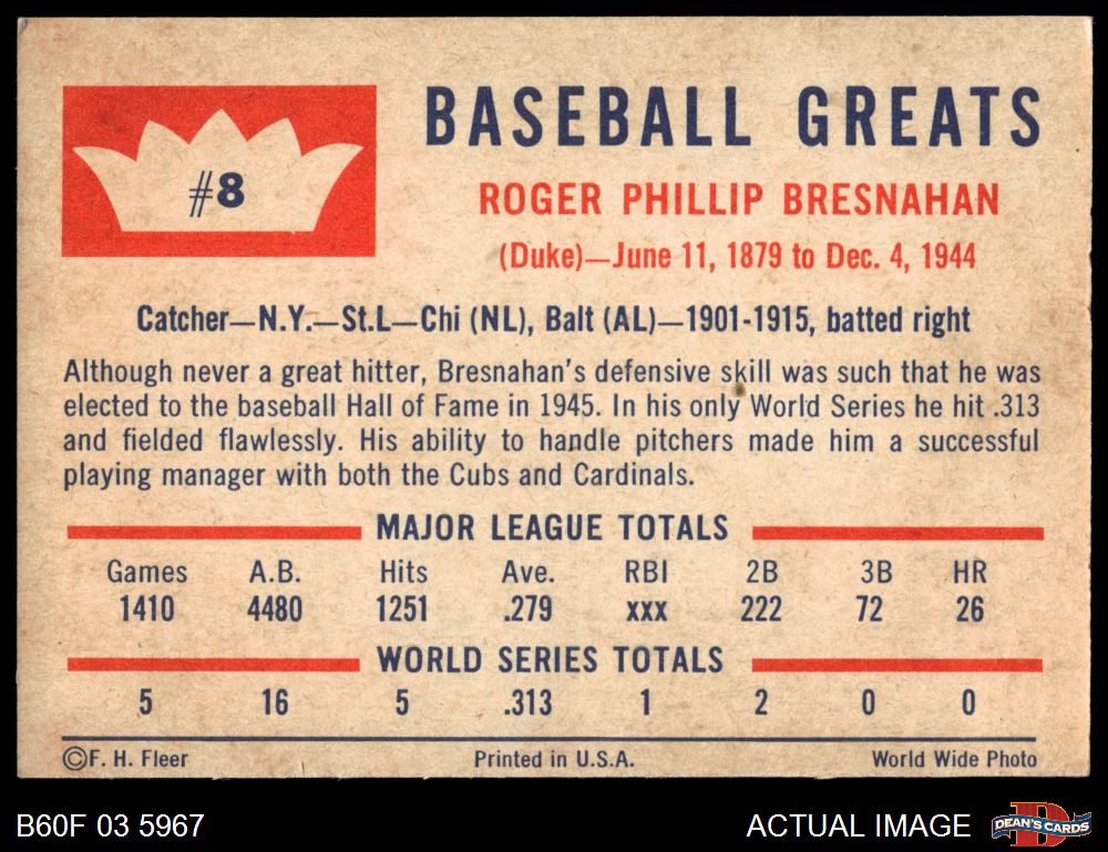 1960 Fleer #8 Roger Bresnahan 4 - VG/EX