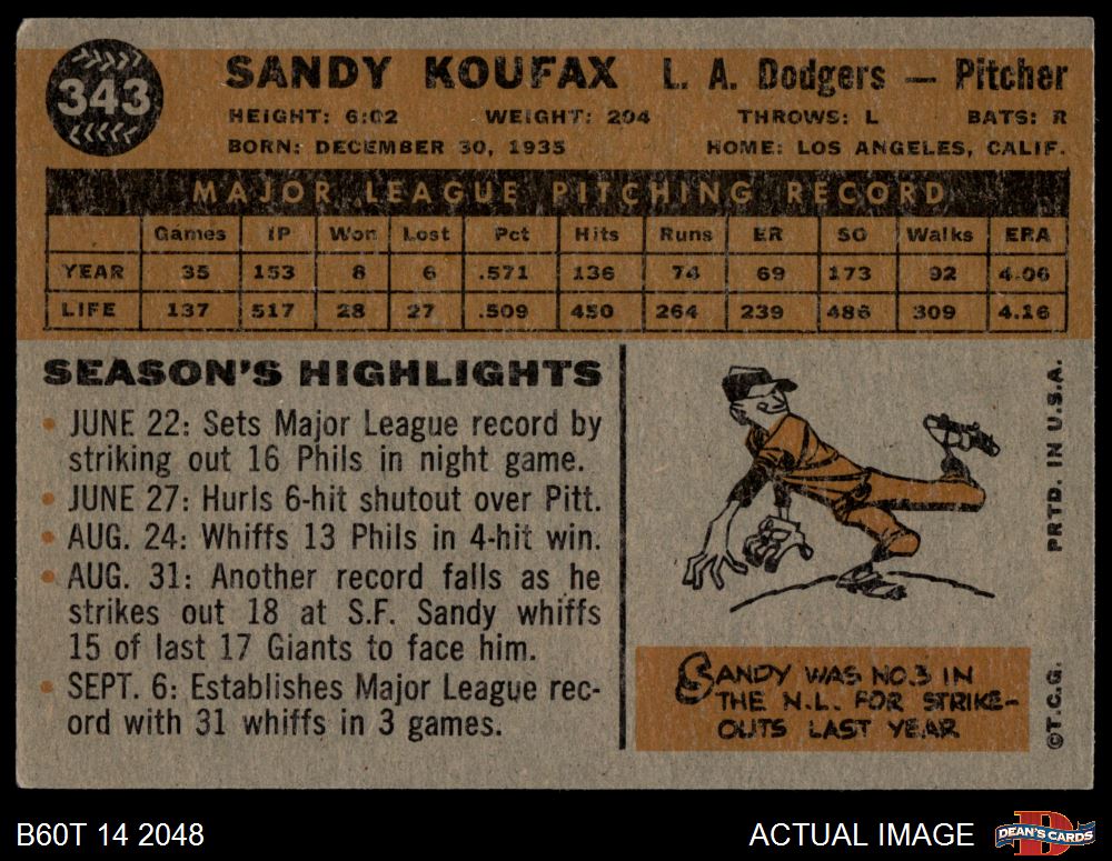1960 Topps #343 Sandy Koufax