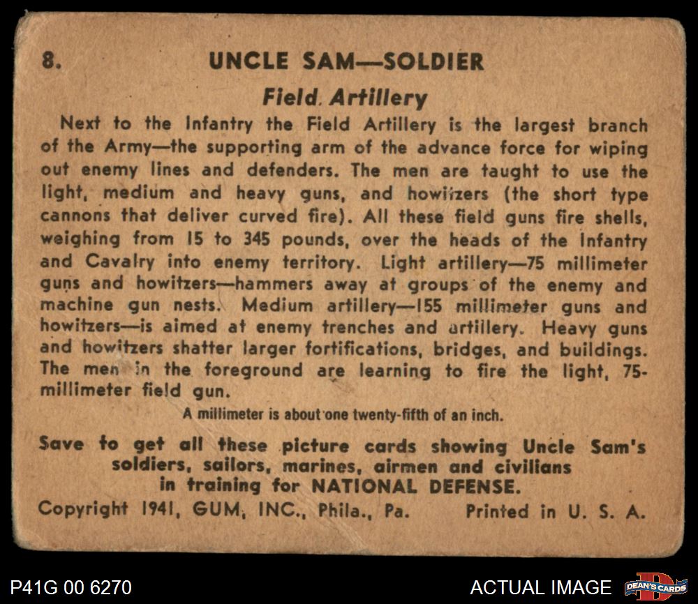 1941 Uncle Sam #8 Field Artillery 1 - POOR