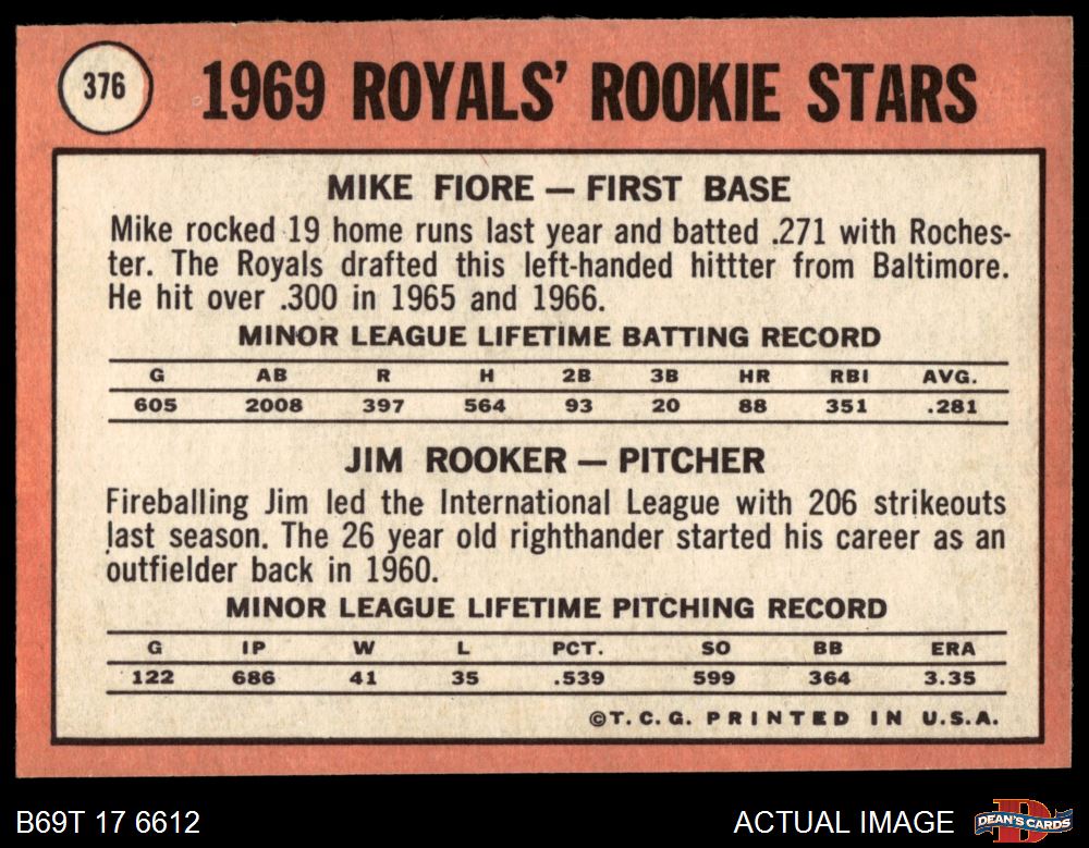 1969 Topps #376 - Mike Fiore / Jim Rooker Royals Rookies 5 - EX