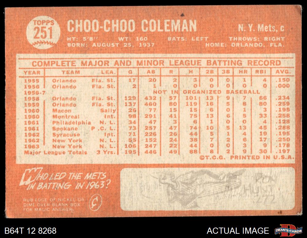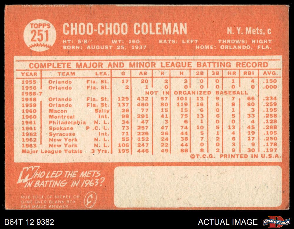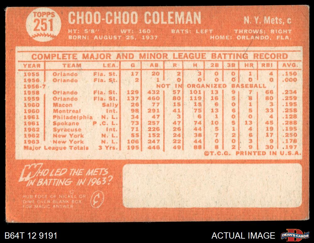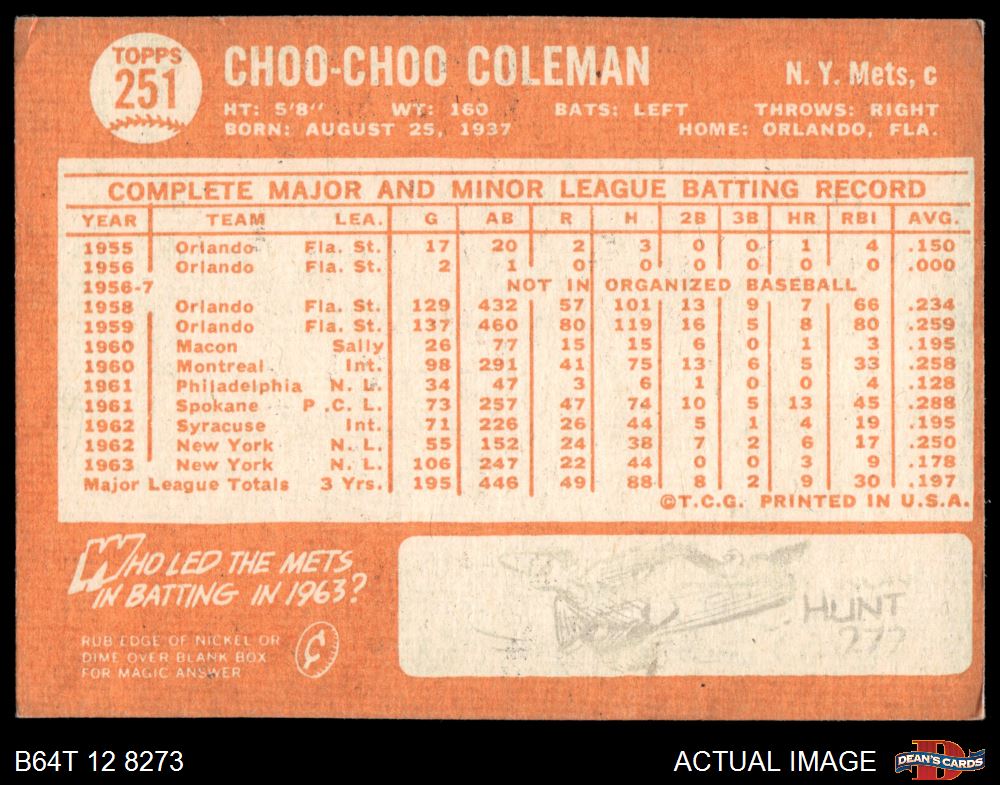 1964 Topps #251 Choo Choo Coleman 2 - GOOD