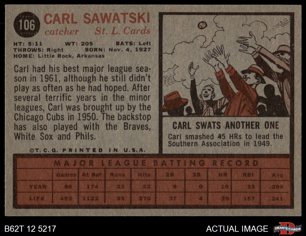 1962 Topps #106 Carl Sawatski 5.5 - EX+
