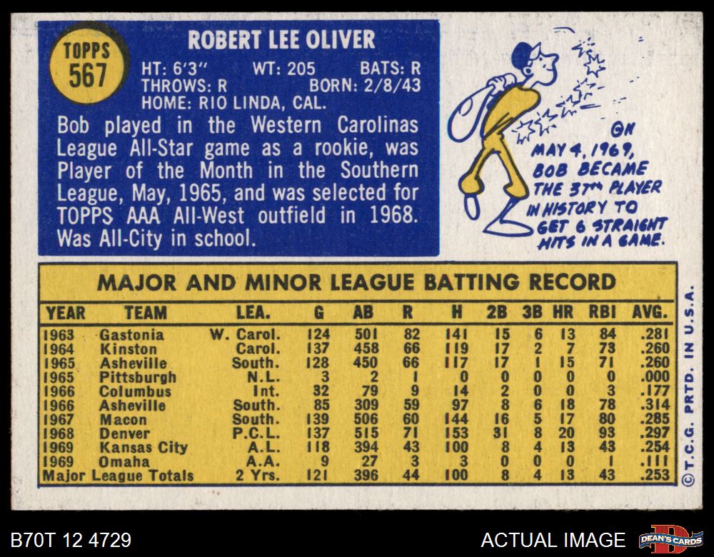 1970 Topps #567 Bob Oliver