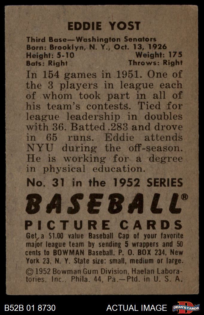 1952 Bowman Baseball Cards (905 available)1952 Bowman Senators (127 available)