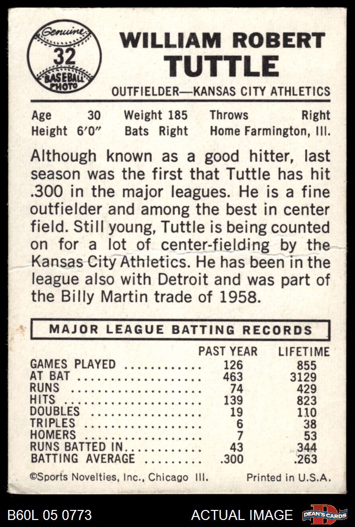 1960 Leaf #32 Bill Tuttle 1.5 - FAIR