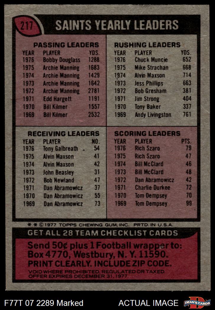 1977 Topps #217  Saints Team Checklist Front Thumbnail