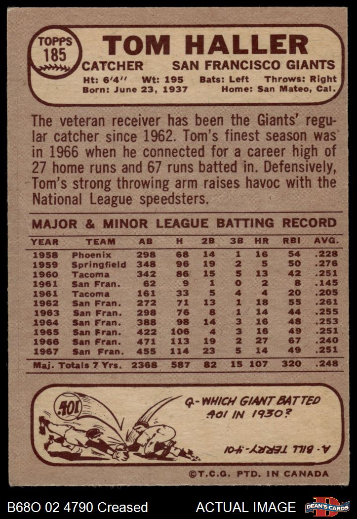 1968 O-Pee-Chee #185 Tom Haller 3 - VG