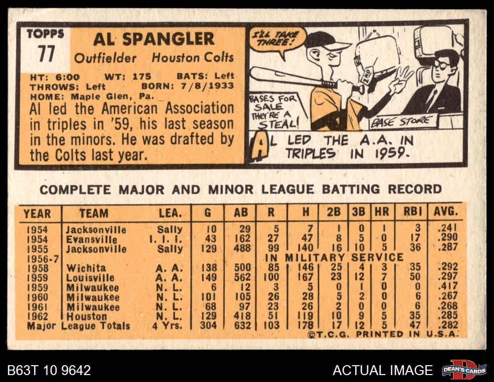 1963 Topps #77 Al Spangler