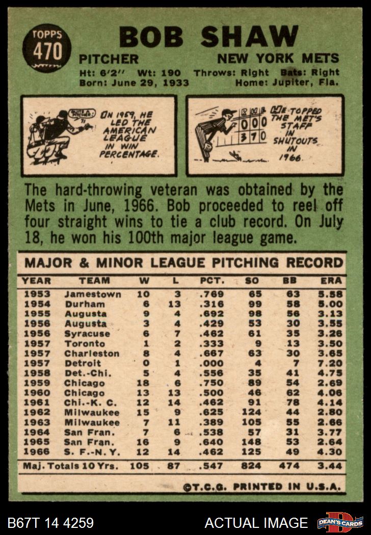 1967 Topps #470 Bob Shaw 6 - EX/MT