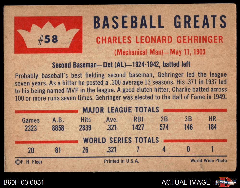 1960 Fleer #58 Charlie Gehringer 2 - GOOD