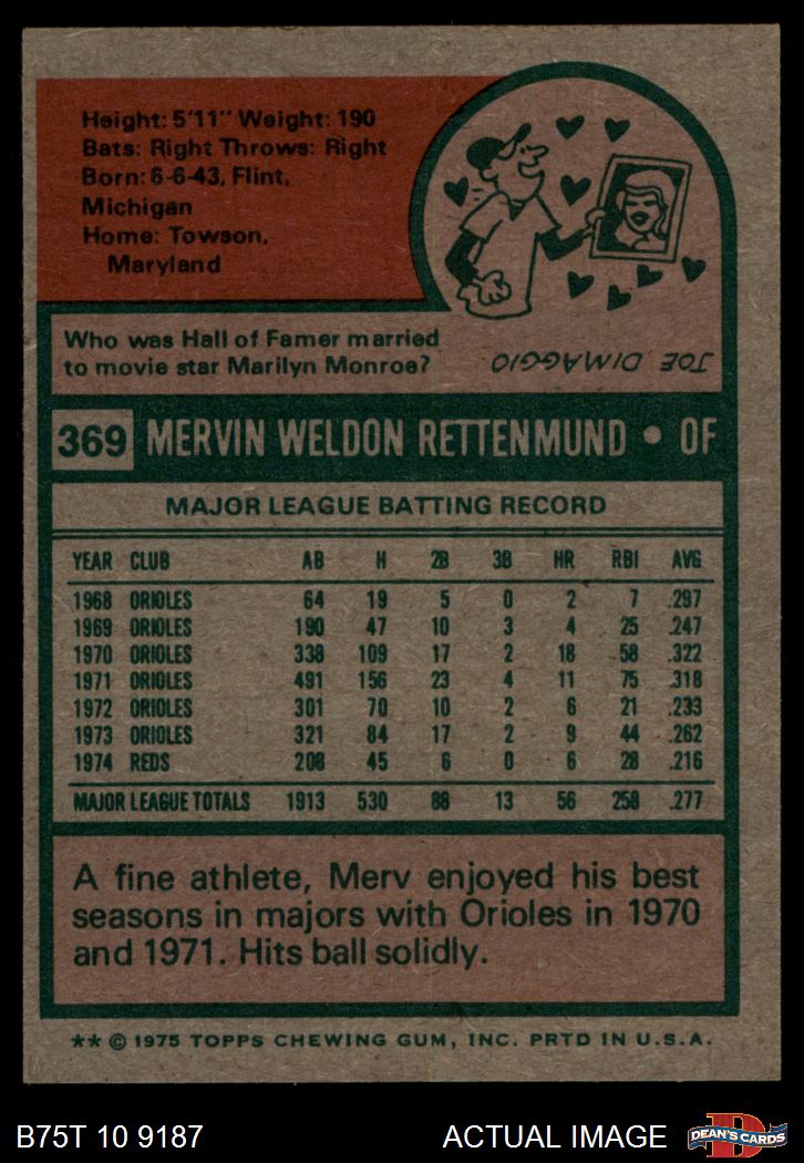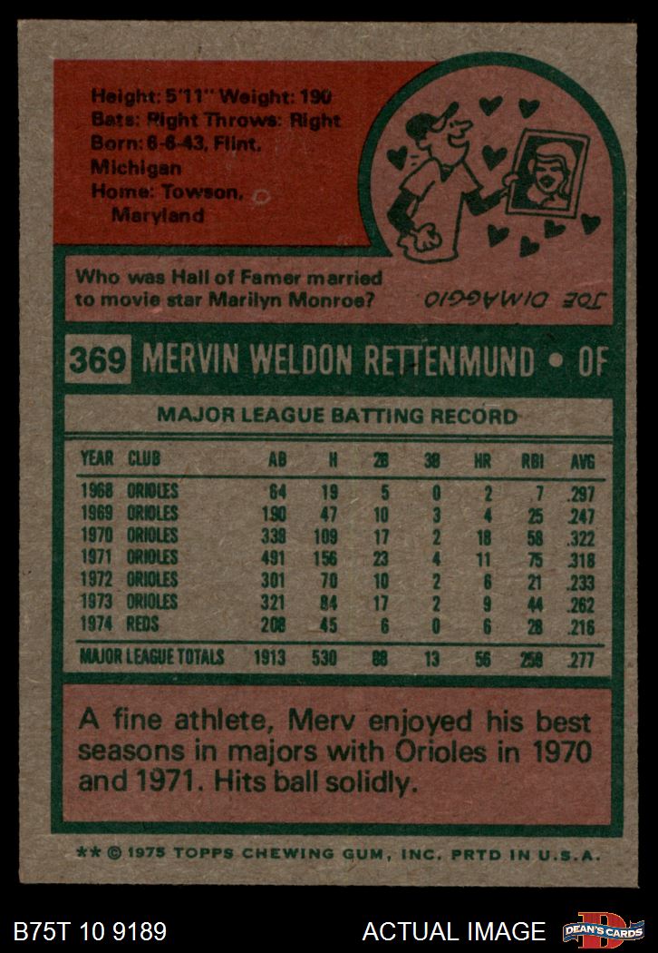 1975 Topps #369 Merv Rettenmund 6 - EX/MT