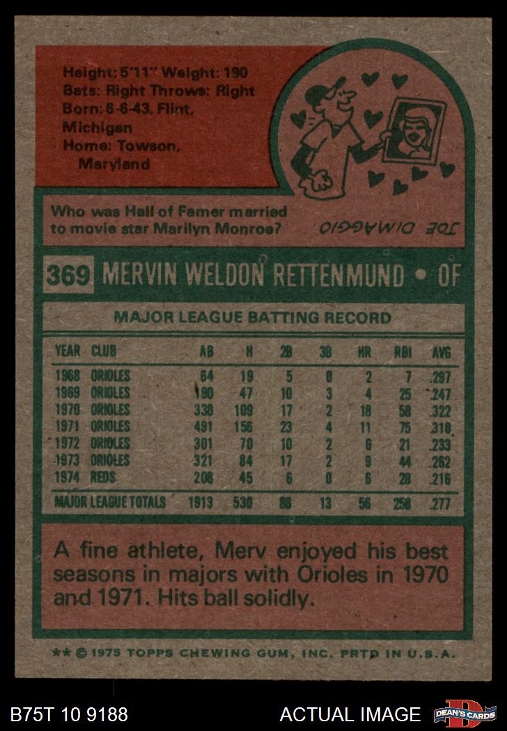 1975 Topps #369 Merv Rettenmund 9 - MINT