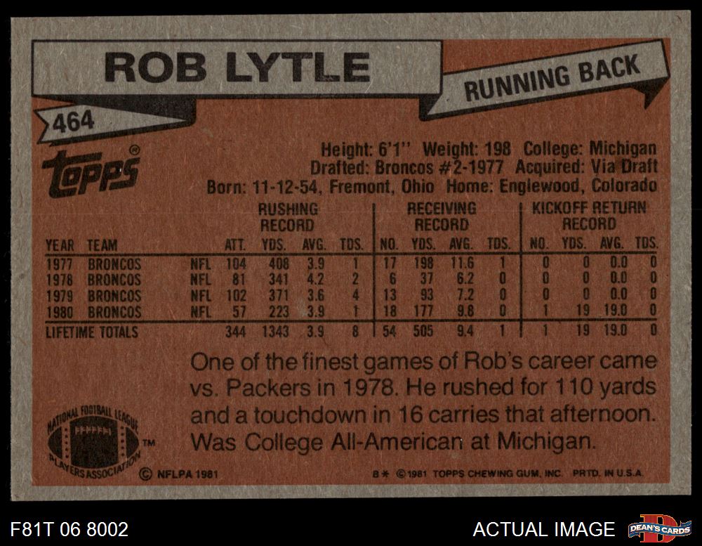 1981 Topps #464 Rob Lytle 6 - EX/MT