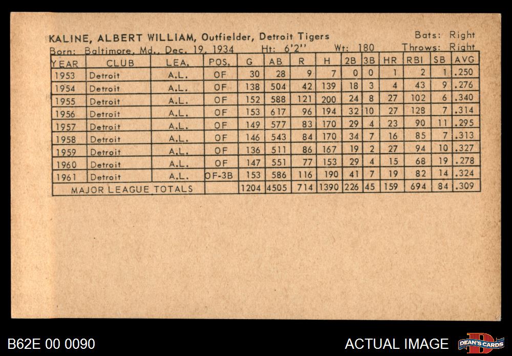 1962 Exhibit Stat Backs (7 available)1962 Exhibits Stat Back Tigers (3 available)