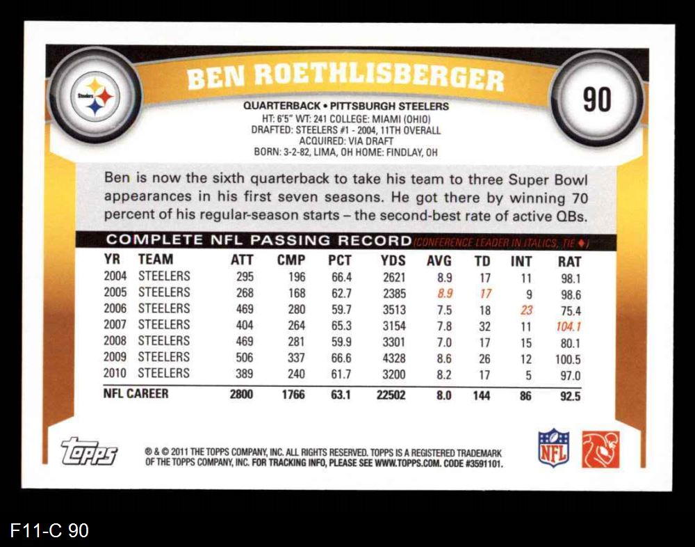 2011 Topps #90 Ben Roethlisberger 8 - NM/MT