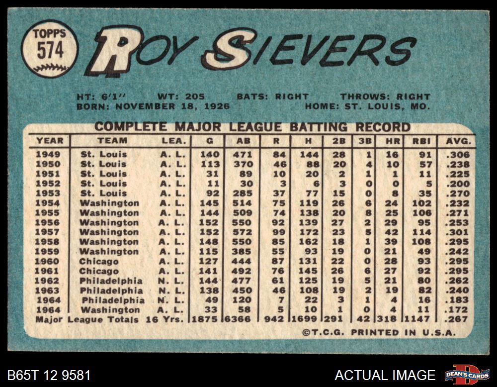 1965 Topps #574 Roy Sievers 4 - VG/EX