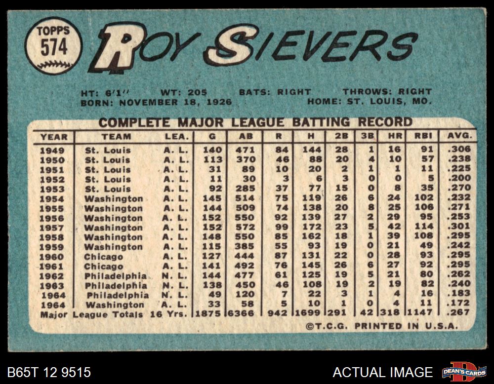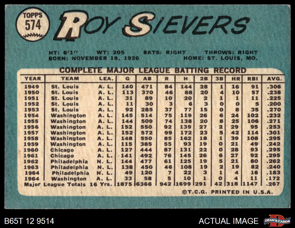 1965 Topps #574 Roy Sievers 6 - EX/MT