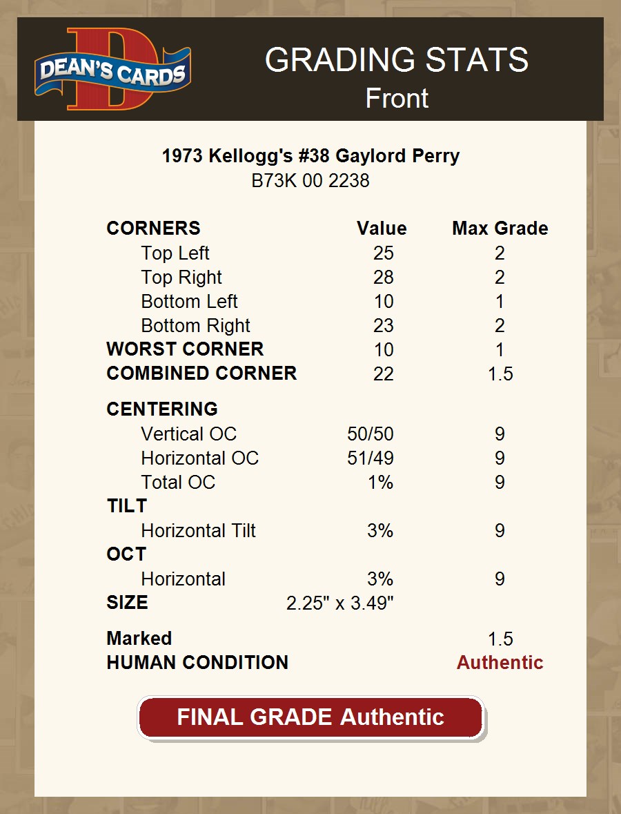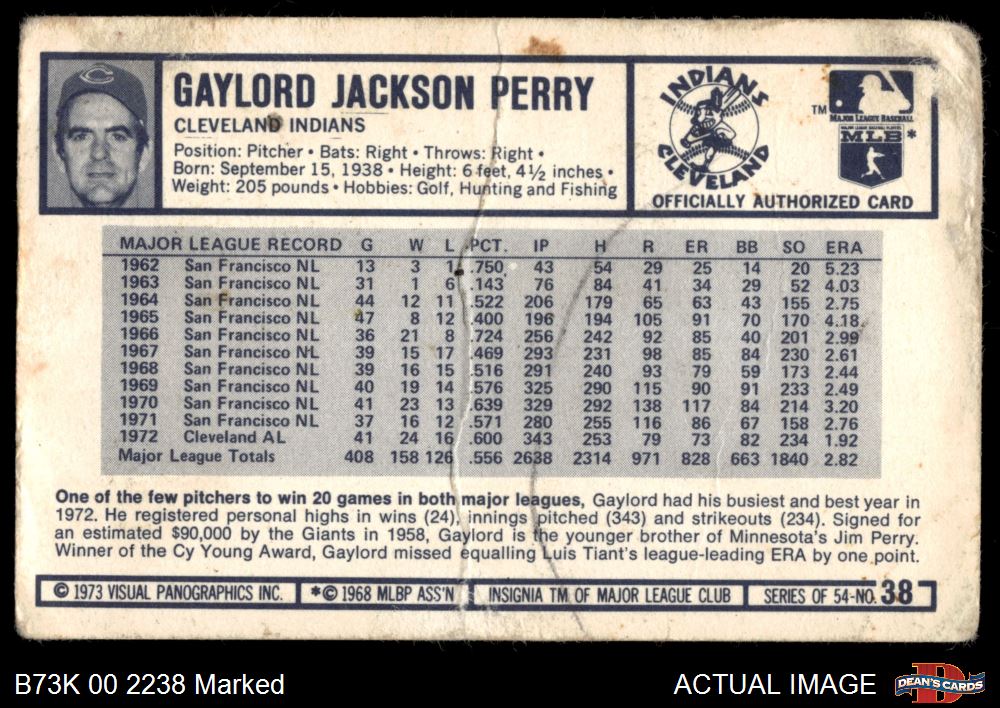 1973 Kellogg's #38 Gaylord Perry AUTHENTIC