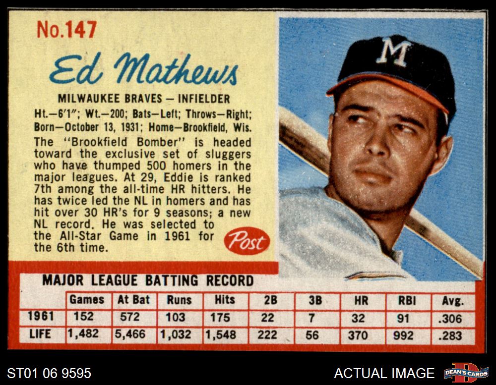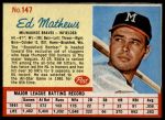 1962 Post Cereal #147 Eddie Mathews