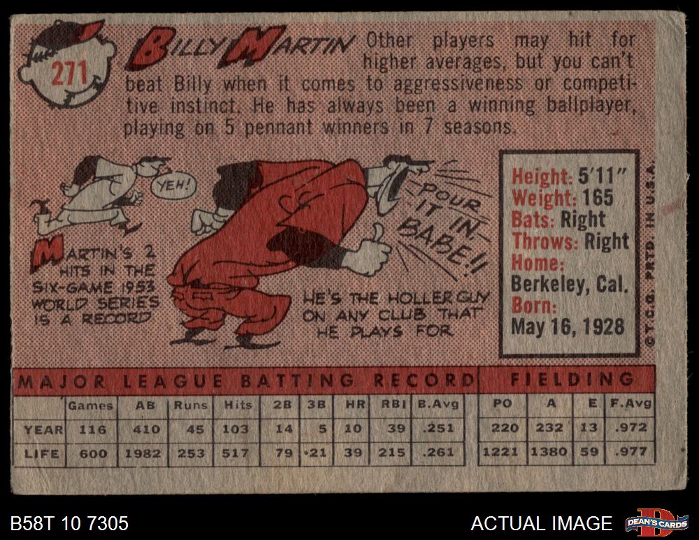 1958 Topps #271 Billy Martin 1.5 - FAIR