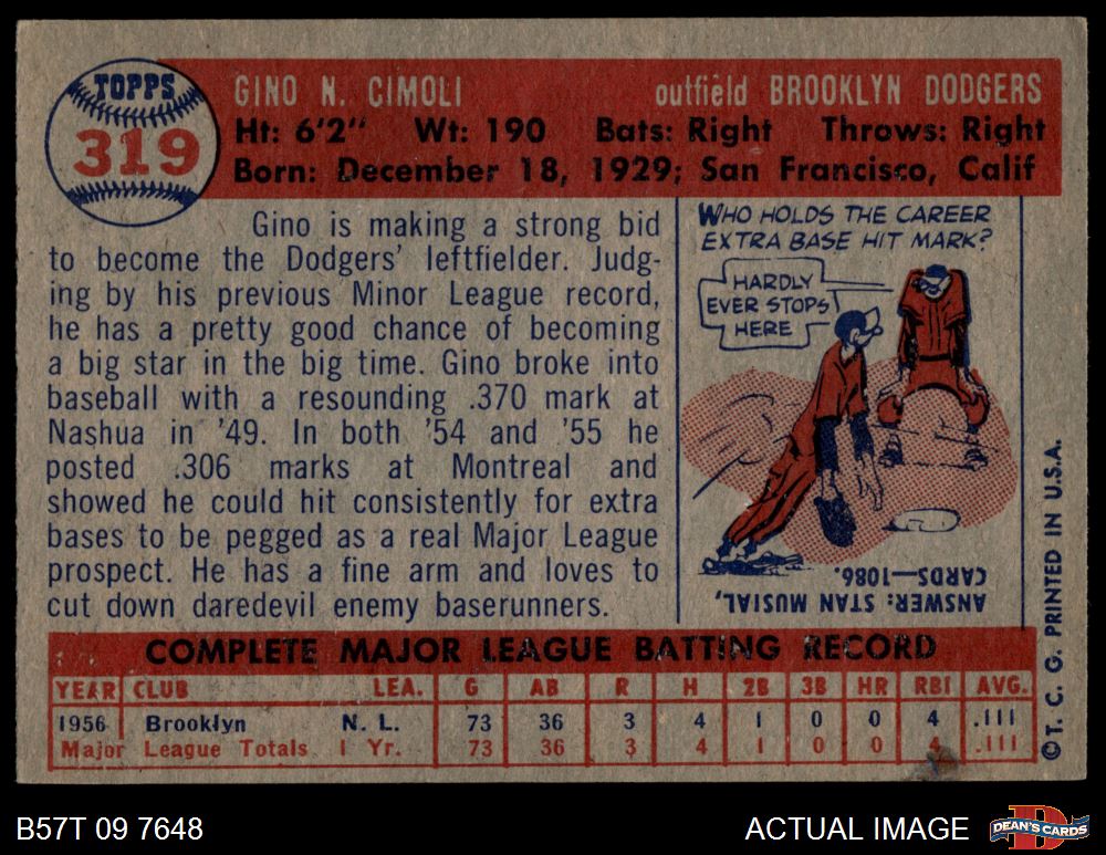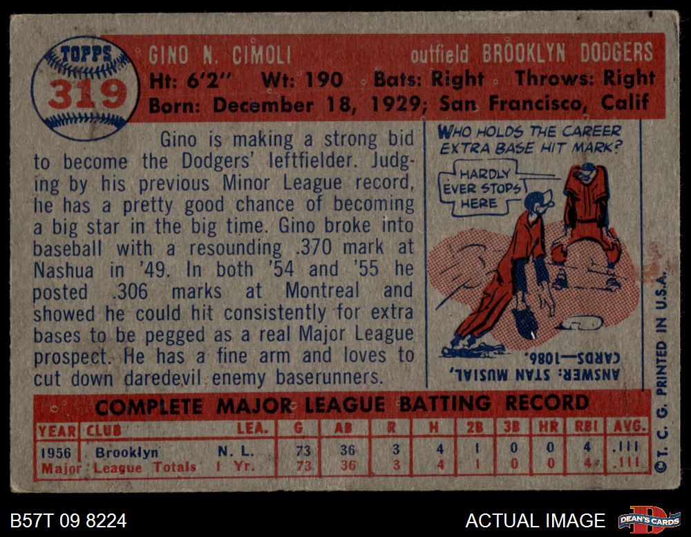 1957 Topps #319 Gino Cimoli