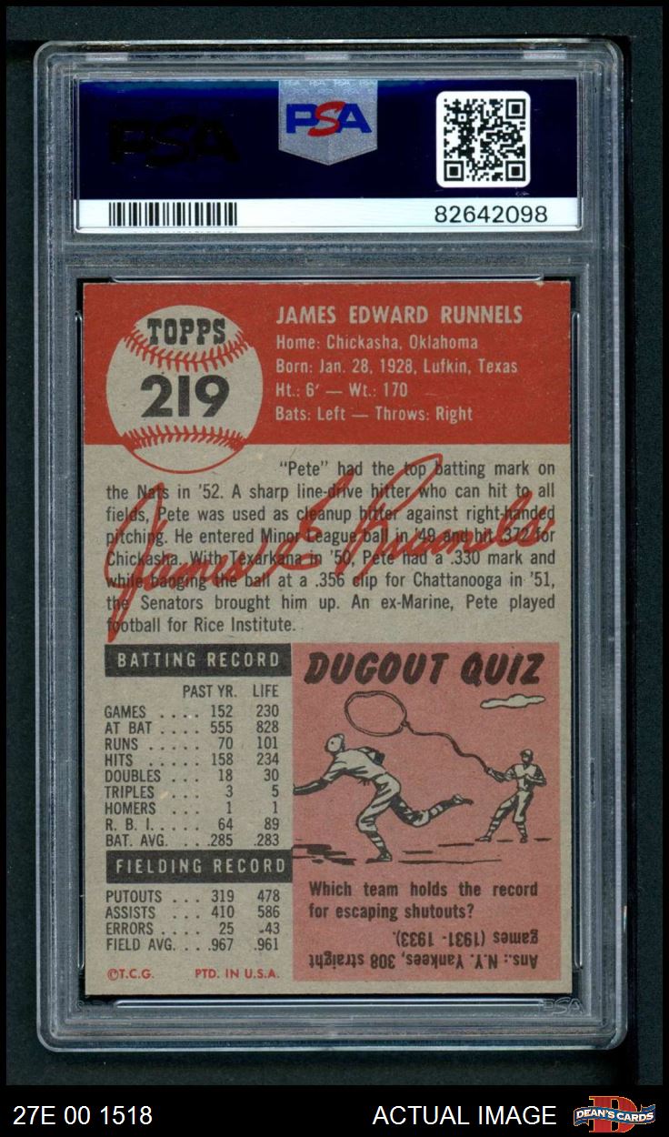 1953 Topps #219 Pete Runnels PSA 6 - EX/MT