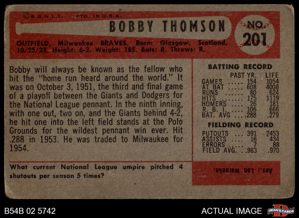 1954 Bowman #201 Bobby Thomson 1.5 - FAIR