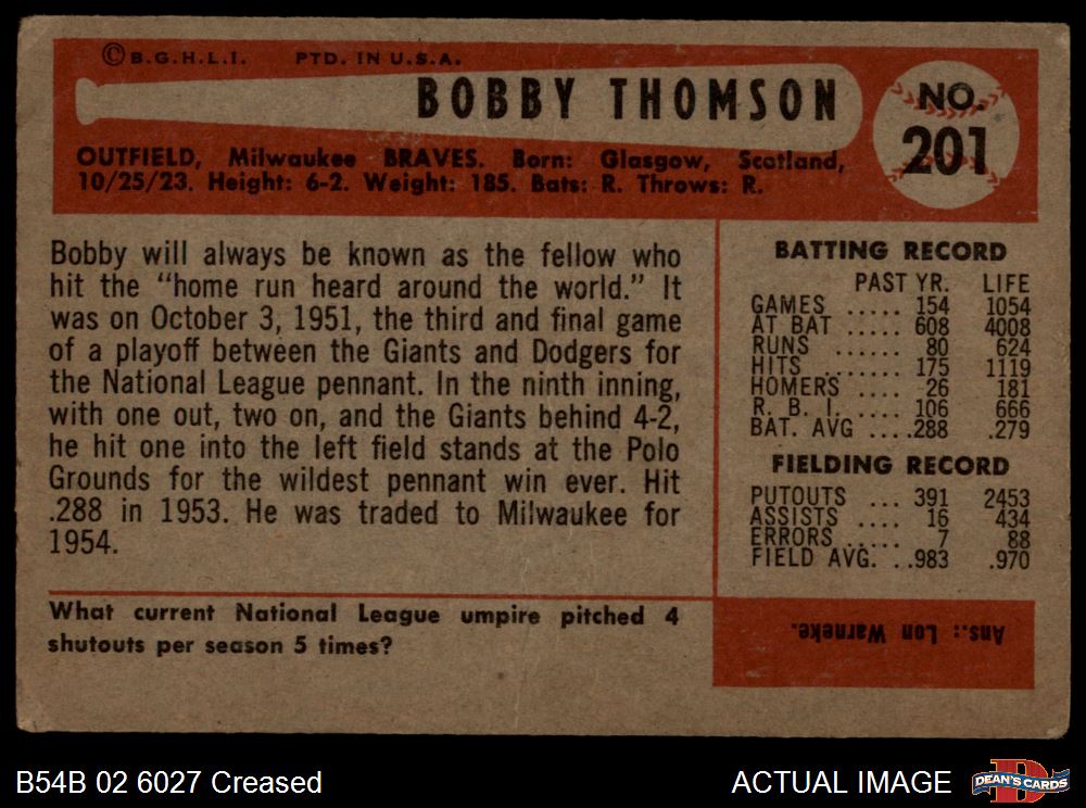 1954 Bowman #201 Bobby Thomson