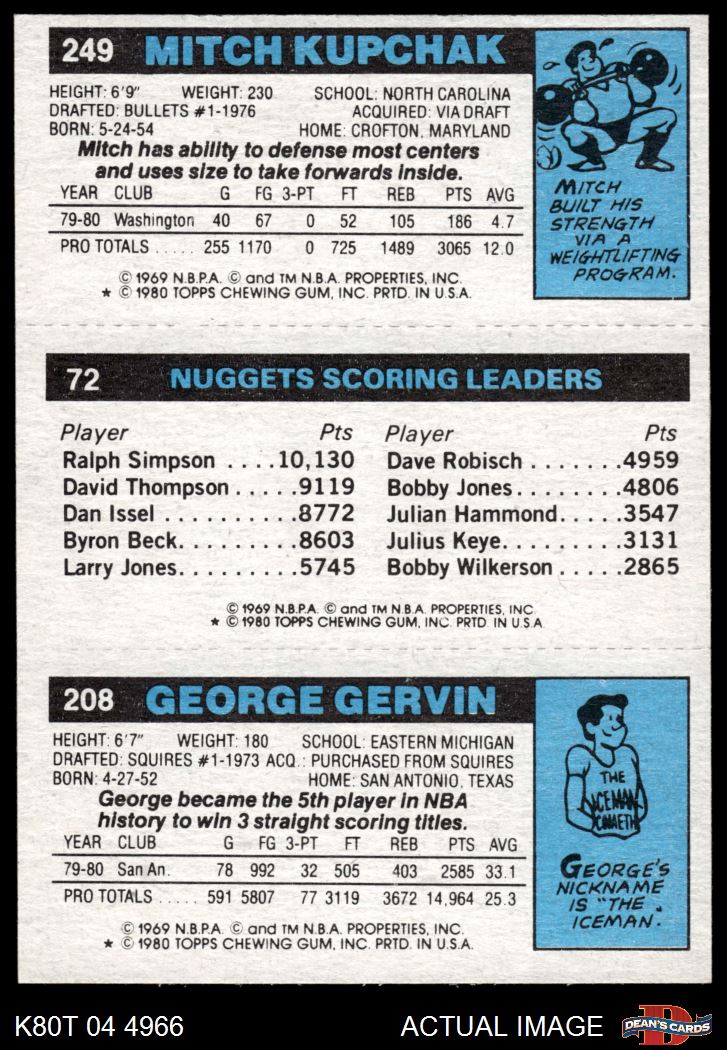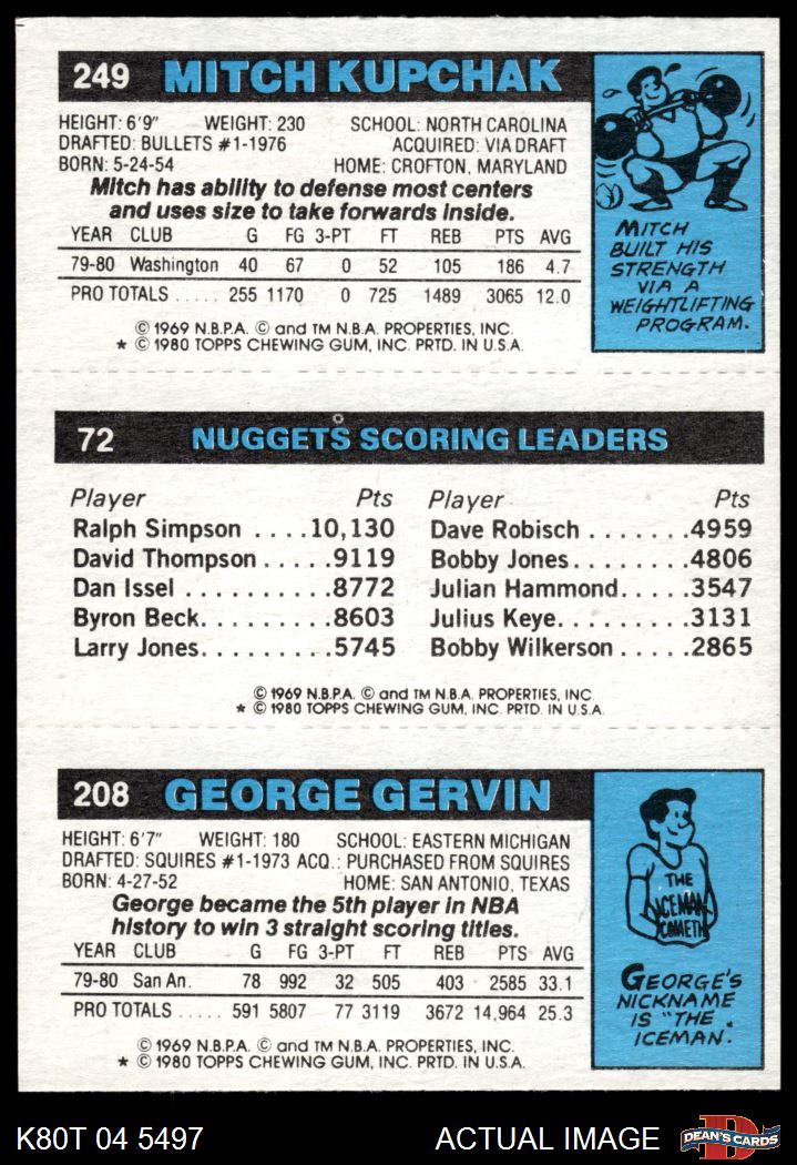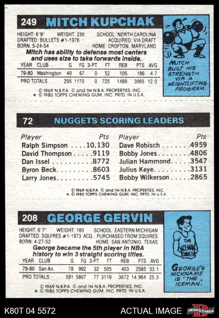 1980 Topps - George Gervin / Dan Issel / Mitch Kupchak 208 / 72 / 249 7 - NM