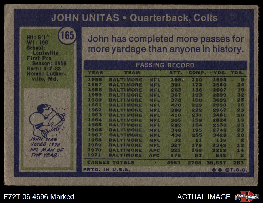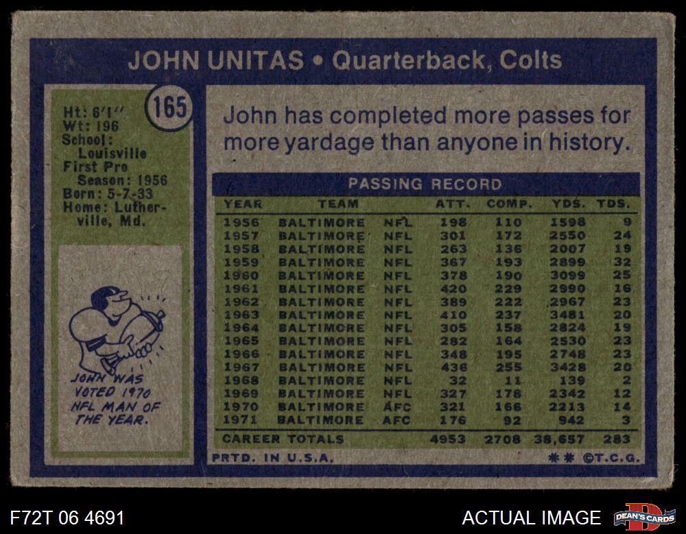 1972 Topps #165 Johnny Unitas 1 - POOR