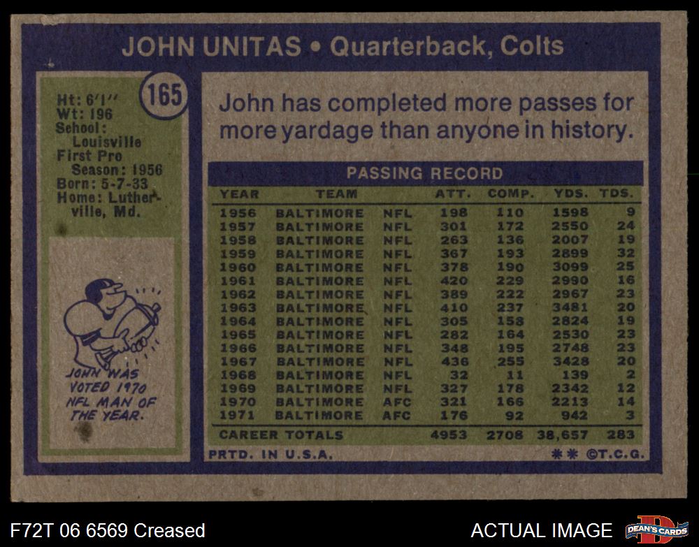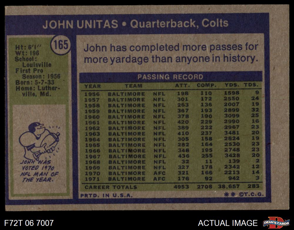 1972 Topps #165 Johnny Unitas Front Thumbnail