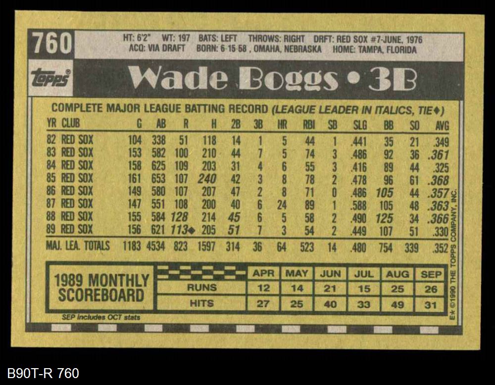 1990 Topps #760 Wade Boggs 8 - NM/MT