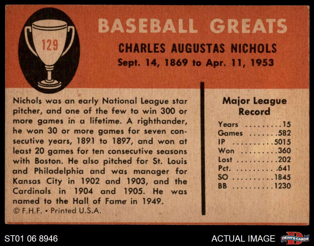 1961 Fleer #129 Kid Nichols 4 - VG/EX