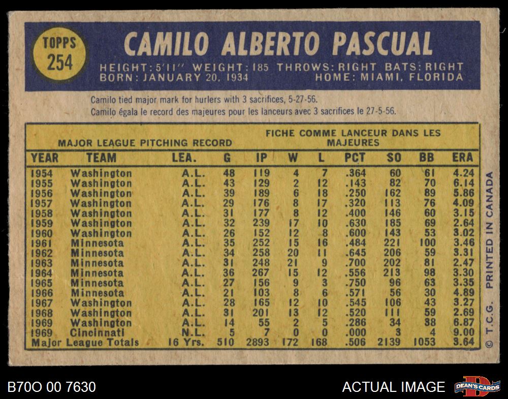 1970 O-Pee-Chee #254 Camilo Pascual 2 - GOOD
