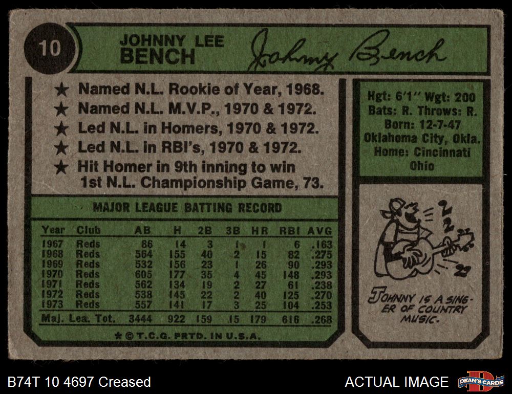 1974 Topps #10 Johnny Bench 1.5 - FAIR