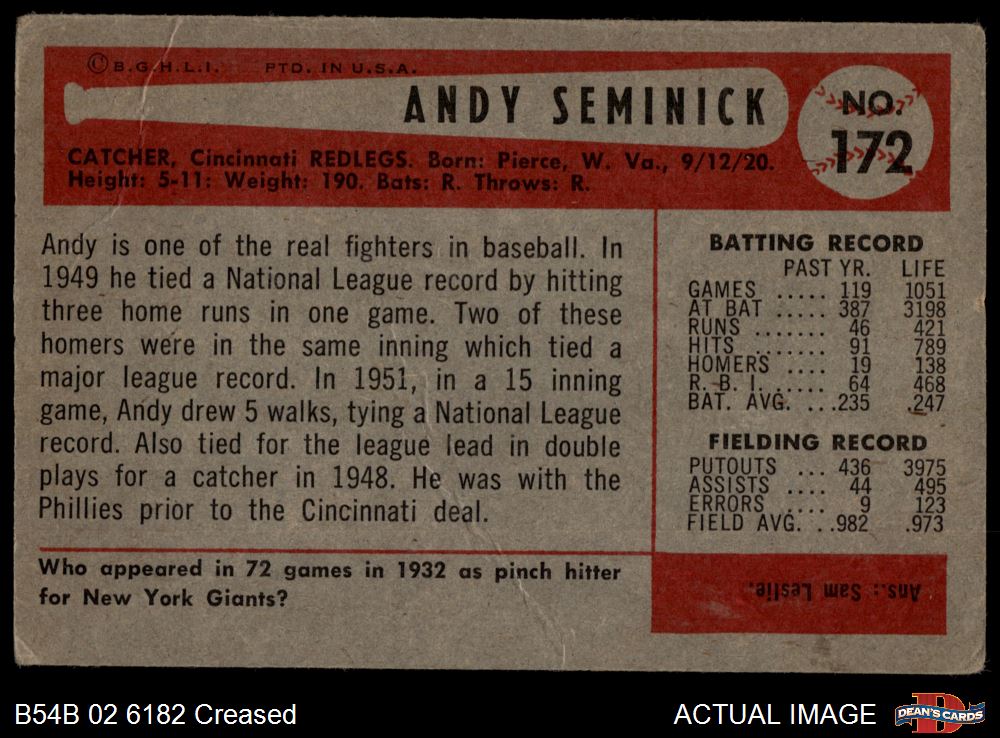1954 Bowman #172 Andy Seminick