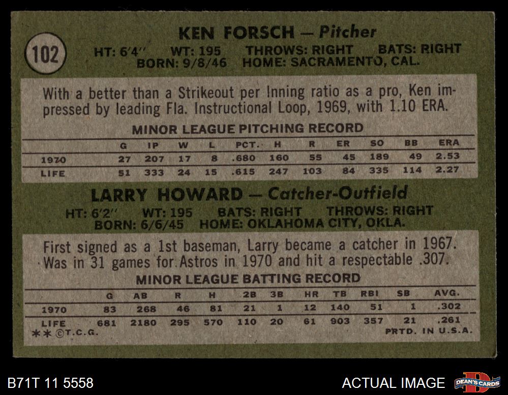 1971 Topps #102 - Larry Howard / Ken Forsch Astros Rookies 3 - VG