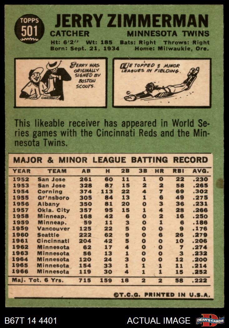1967 Topps #501 Jerry Zimmerman 7 - NM