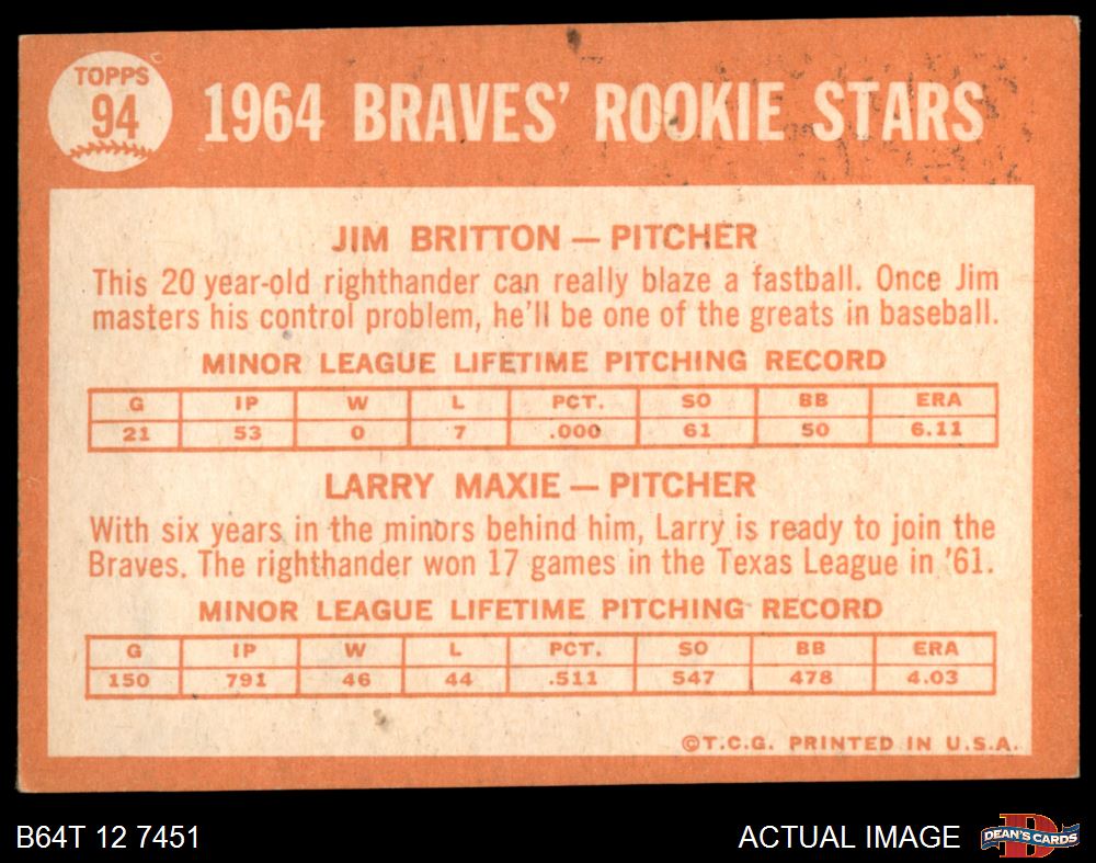 1964 Topps #94 - Larry Maxie / Jim Britton Braves Rookies 2 - GOOD