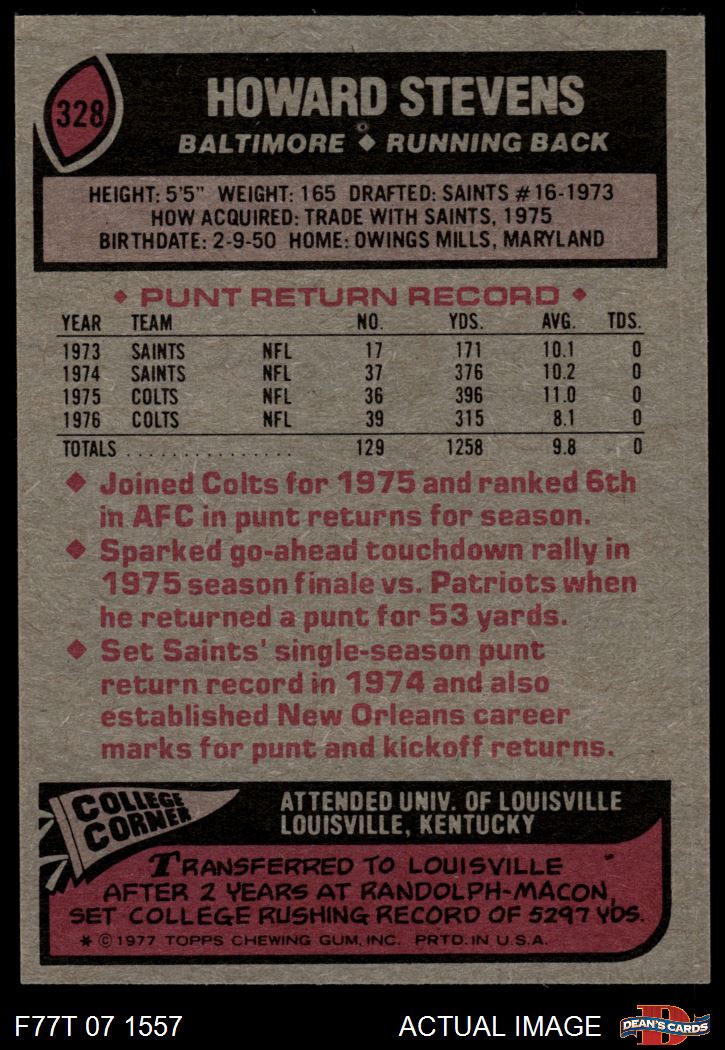 1977 Topps #328 Howard Stevens