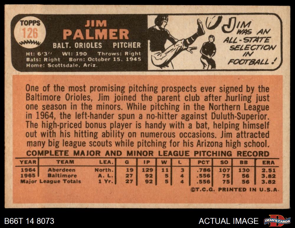1966 Topps #126 Jim Palmer 4 - VG/EX