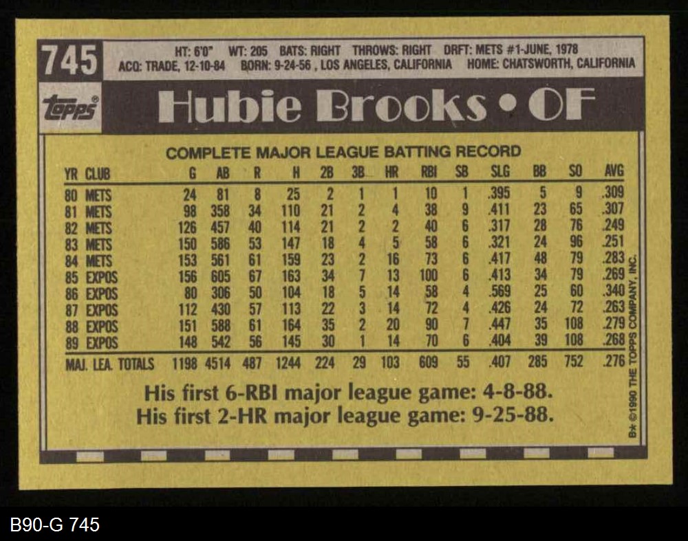 1990 Topps #745 Hubie Brooks 8 - NM/MT